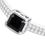 This stylish silver-tone ring is designed with a bold square-cut black stone at the center, enhanced by shimmering crystal details along the band for a refined and modern look. The adjustable band ensures a comfortable fit for different finger sizes. Ideal for evening wear, parties, or everyday fashion, this ring adds a touch of sophistication to any outfit.